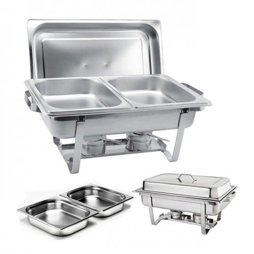 This stainless chafing Dish is ideal for catering your next special event. Supplied with a steam pan, Water pan ,Lid and two fuel holders